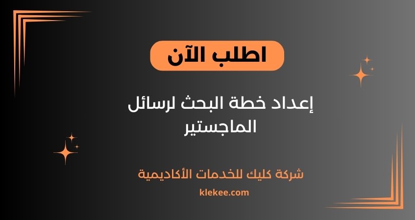 لا تفوت فرصتك في إعداد خطة بحث على أعلى درجة من الكفاءة من خلال شركة كليك للخدمات الأكاديمية حيث تتعاون شركتنا مع أبرز الخبراء والأساتذة المعتمدين من أرقى الجامعات العلمية في تخصصات مختلفة.